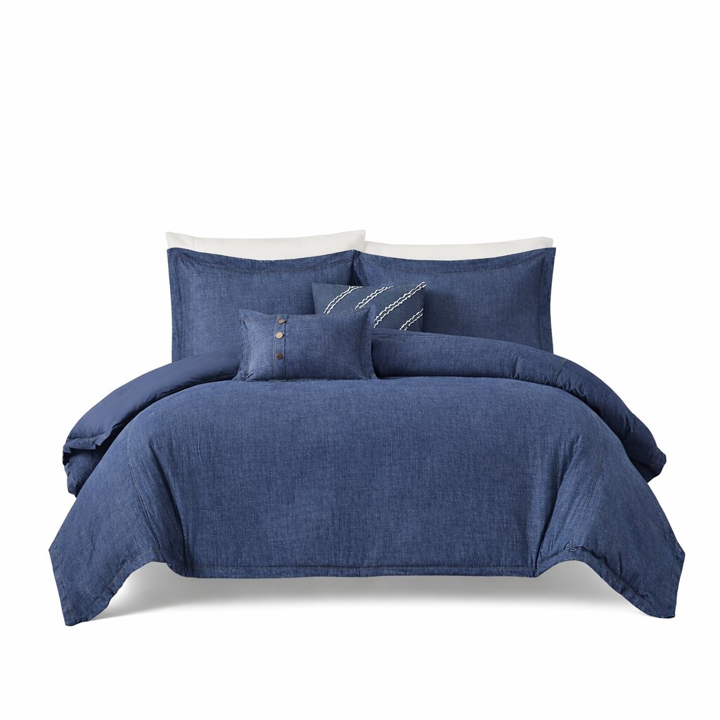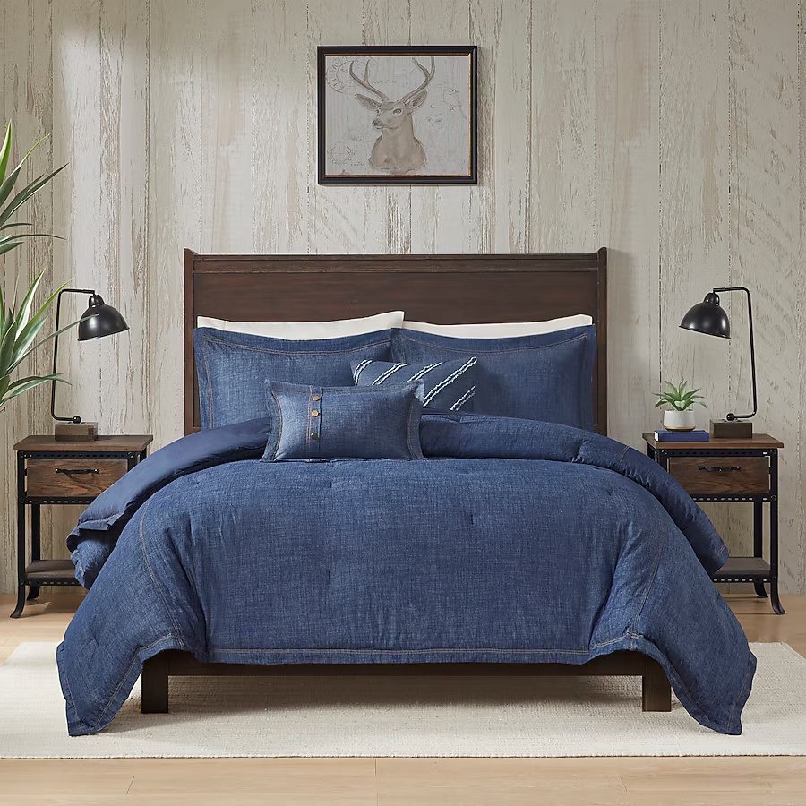 Bring casual denim charm to your bedroom with this cozy comforter set. Oversized and overfilled, it offers warmth and softness for restful nights. Includes two decorative pillows with removable zip covers; fully machine washable.