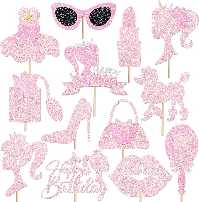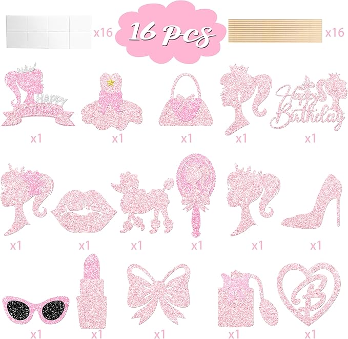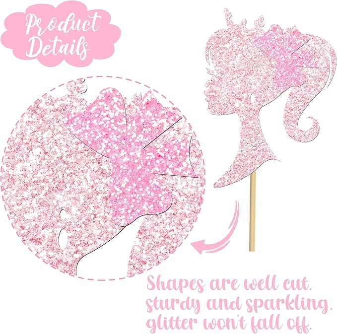 • 【Glitter hot pink girl party centerpiece sticks】You will get 16pcs pink glitter hot pink girl party centerpiece sticks in this package, the pink girl theme patterns are clear and bright, enough quantity and vivid styles can easily meet your various party decoration needs.