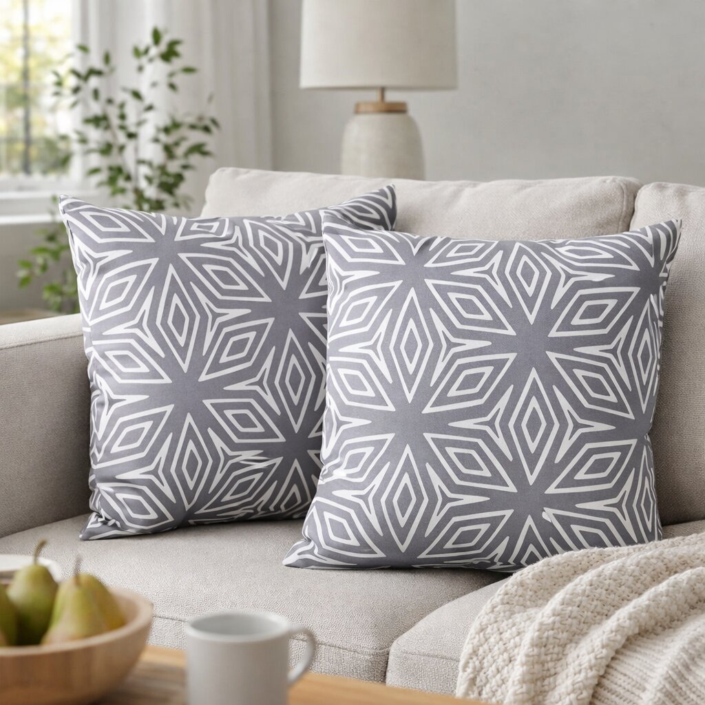 Add a vibrant touch to your porch, deck, or garden furniture with this set of two versatile indoor/outdoor accent pillows. Each piece features a durable, removable cover crafted from 200 GSM spun polyester with a secure zipper closure and high-grade color fastness to resist fading. The interior consists of a plush fiberfill protected by a UV-treated, non-woven fabric to maintain its shape over time.