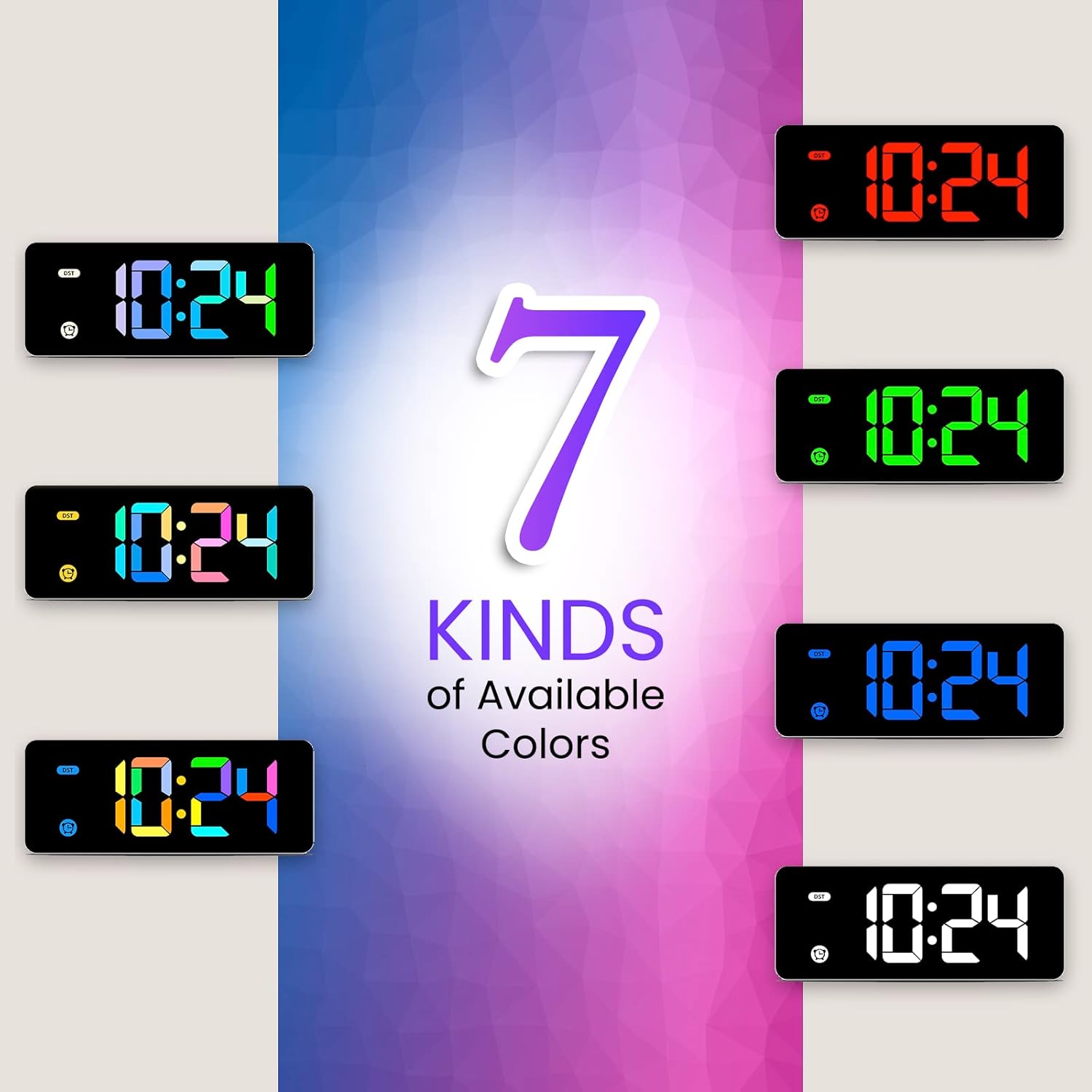 • 7-Color Changing Display – Choose from solid color numbers or a fun color-changing mode; ideal for kids, teens, and even heavy sleepers.