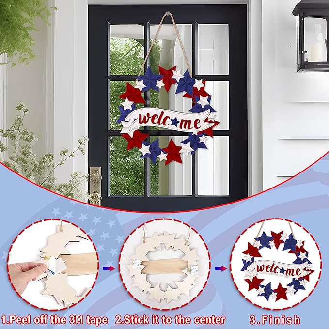 • Where to Use: Adorning your front door, glass door, window, wall, and more, this wreath sign adds a patriotic touch to any space. Infuse your surroundings with the spirited essence of the 4th of July and impress neighbors and guests, inviting them into a festive atmosphere