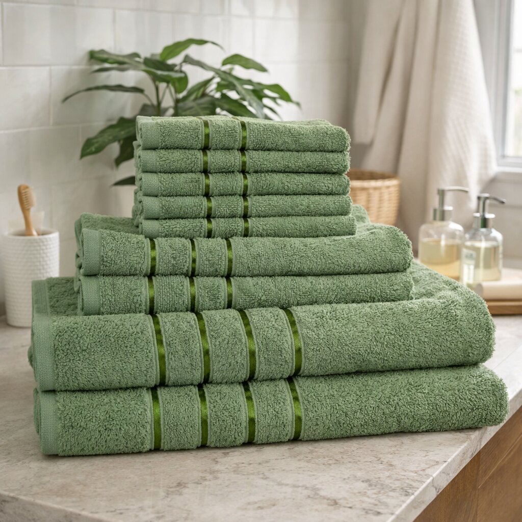 Enhance your bathroom with this stylish and functional 8-piece towel set. Made from 100% cotton, these towels are soft, plush, and highly absorbent for a comfortable everyday experience. The set includes four washcloths, two hand towels, and two bath towels, providing a coordinated look and versatile use. Ideal for both bathroom and beach use, these towels combine practicality with a fresh, vibrant design.