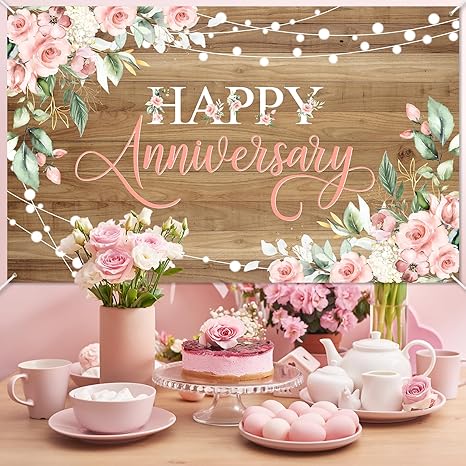 • CELEBRATE IN STYLE: This bright and colorful rustic happy anniversary banner creates a festive backdrop for photographs; Made of high-quality polyester fabric that will maintain its vibrant colors even after repeated use, with string for easy hanging