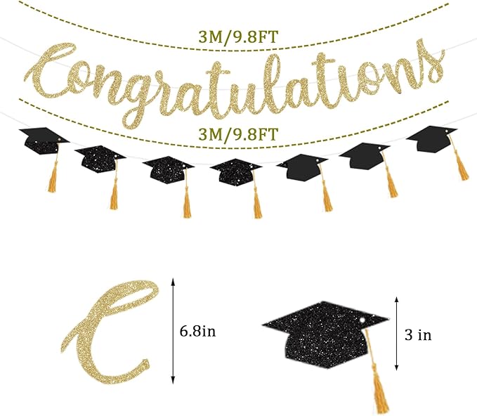 • 1…Gold gliter paper Congratulations banner, Prepare particularly for celebrating graduation, wedding, retirement party.