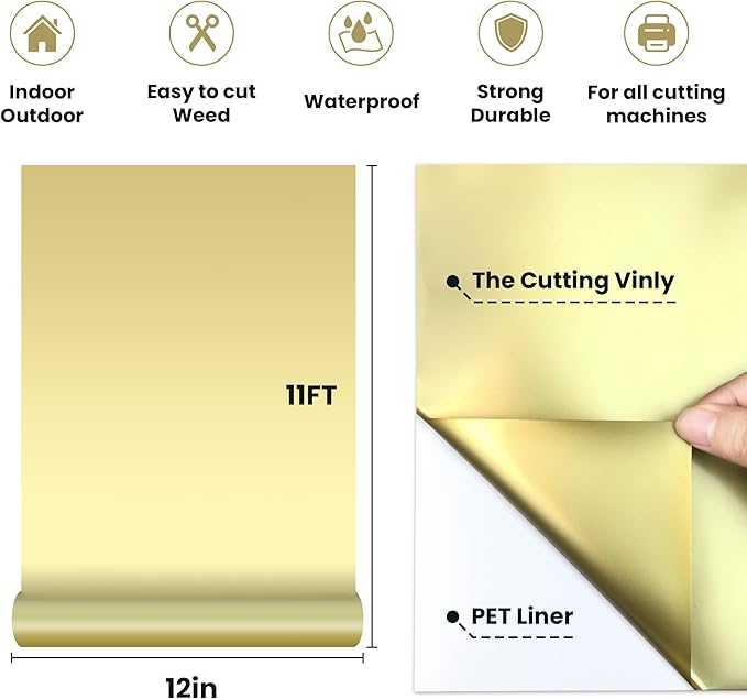 Glossy Gold Permanent Vinyl Roll – 12″x11FT Durable Adhesive for Cricut, Decals & Signs