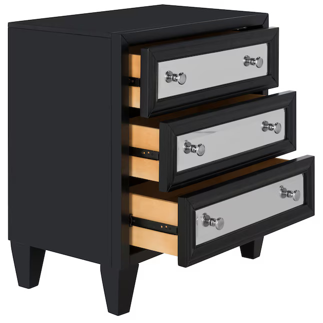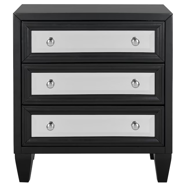 Combining style and luxury, this three-drawer chest features an effortlessly chic design with a classic black finish and elegant mirrored panels. It is highly valued for providing ample, discreet storage and is a popular choice for designers to arrange in pairs to enhance a room’s symmetry. This versatile piece serves as both a sophisticated accent and a practical organization solution for any modern living space.