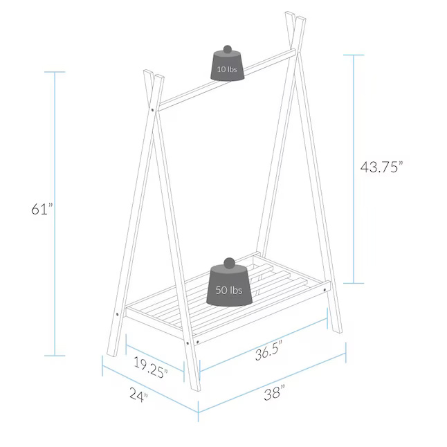 Save time and setup with our minimalist Teepee Coat Rack with Shelf. Its solid wood construction allows it to stand up to even the heaviest of Winter coats. A perfect additional storage for shoes or other accessories. The lower shelf design allows for ample room to bring all of your design ideas to life. Its design will resonate harmoniously with any wooden or antique furnishings.