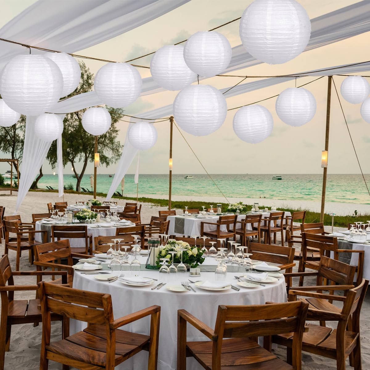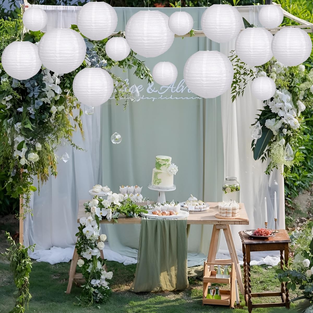 • PERFECT DECORATION- Paper lanterns are suitable for maroon and white party decorations, bachelorette party decorations, graduation party decorations, white birthday decorations, also suitable for events such as baby showers decorations, bridal shower decorations, new years decorations and office party, paper lanterns decorative indoor outdoor, courtyard, summer garden party and other white theme party.