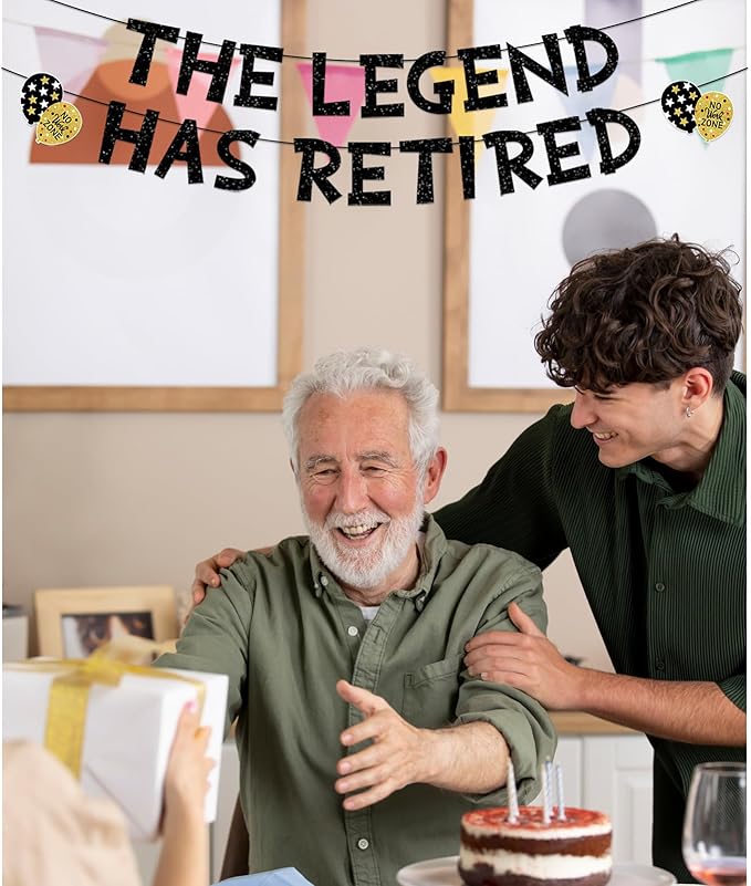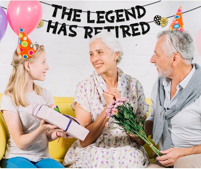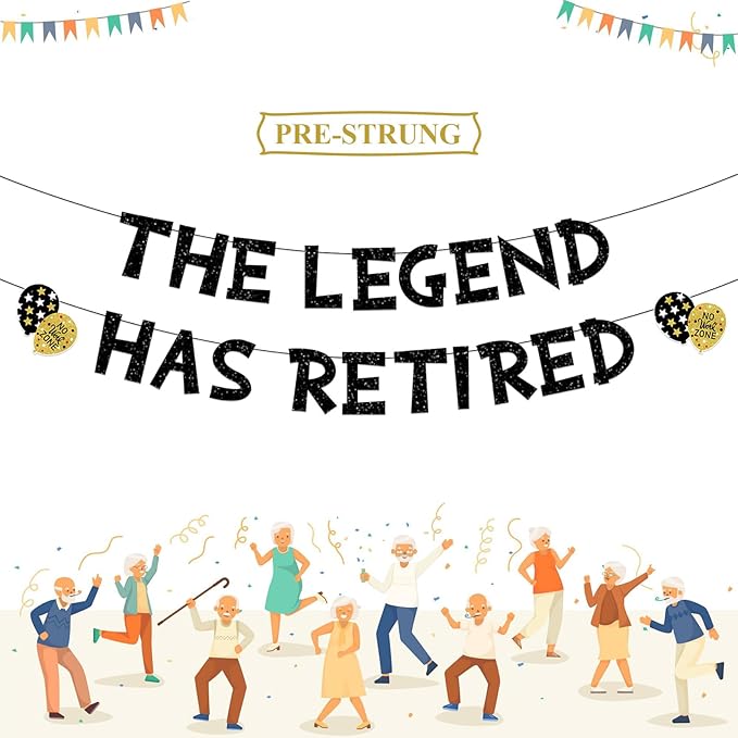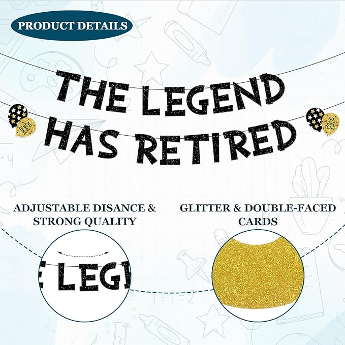 • HAPPY RETIREMENT BANNER: The Legend Has Retired letter garland bunting is designed in 3 colors, black, gold and champagne gold, in which Black and Gold is DOUBLE-SIDE. This glitter garland is a gorgeous accent piece to add into farewell decorations
