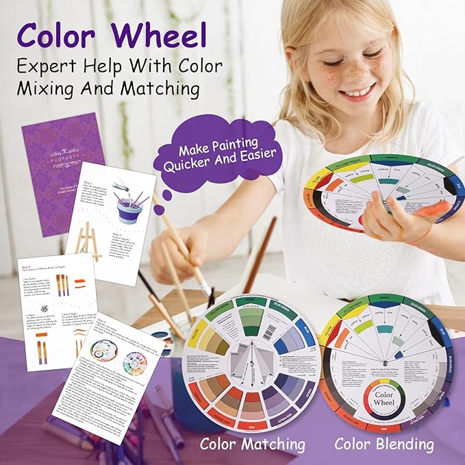 • 【Professional Color Wheel & Instruction Manual for Kids Paint Set】 The kit features a professional-grade color wheel and a detailed instruction manual, making it easy for beginners to learn color mixing, understand color theory, and master art techniques. These tools are invaluable for blending, shading, and creating beautiful art projects with painting kits for kids.