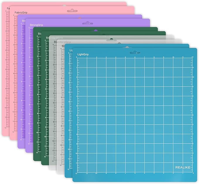 • Cutting Mat for Cricut : REALIKE Cutting Mats works perfectly with Cricut Maker 3, Cricut Maker, Cricut Explore 3, Cricut Explore Air 2, Cricut Explore Air, Cricut Explore One 12×12 inch, 10 pack include 2 LightGrip , 4 StandardGrip, 2 StrongGrip and 2 Fabricgrip.