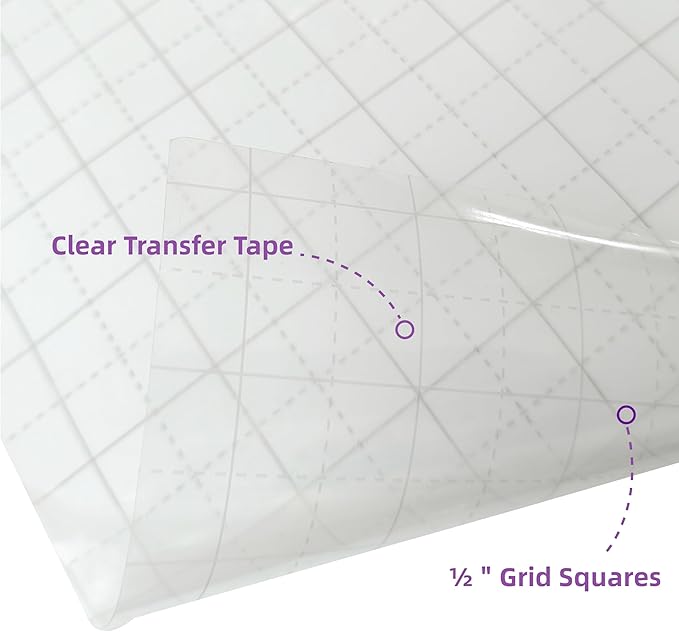 • The transfer tape roll 1/2” grid makes placement and layering easier, the grid line will help you to adjust the accurateness of the project.