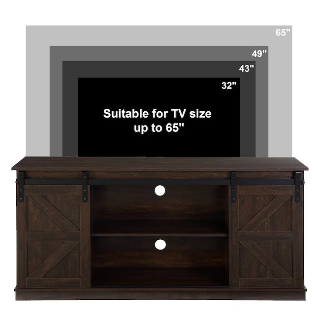 Designed for both longevity and rustic appeal, this farmhouse-style media console combines premium materials with a functional layout. It features ample storage space and versatile barn doors, creating a warm, inviting aesthetic while keeping your living area organized. This thoughtfully crafted stand serves as a practical centerpiece that brings a touch of cozy charm to any home entertainment setup.