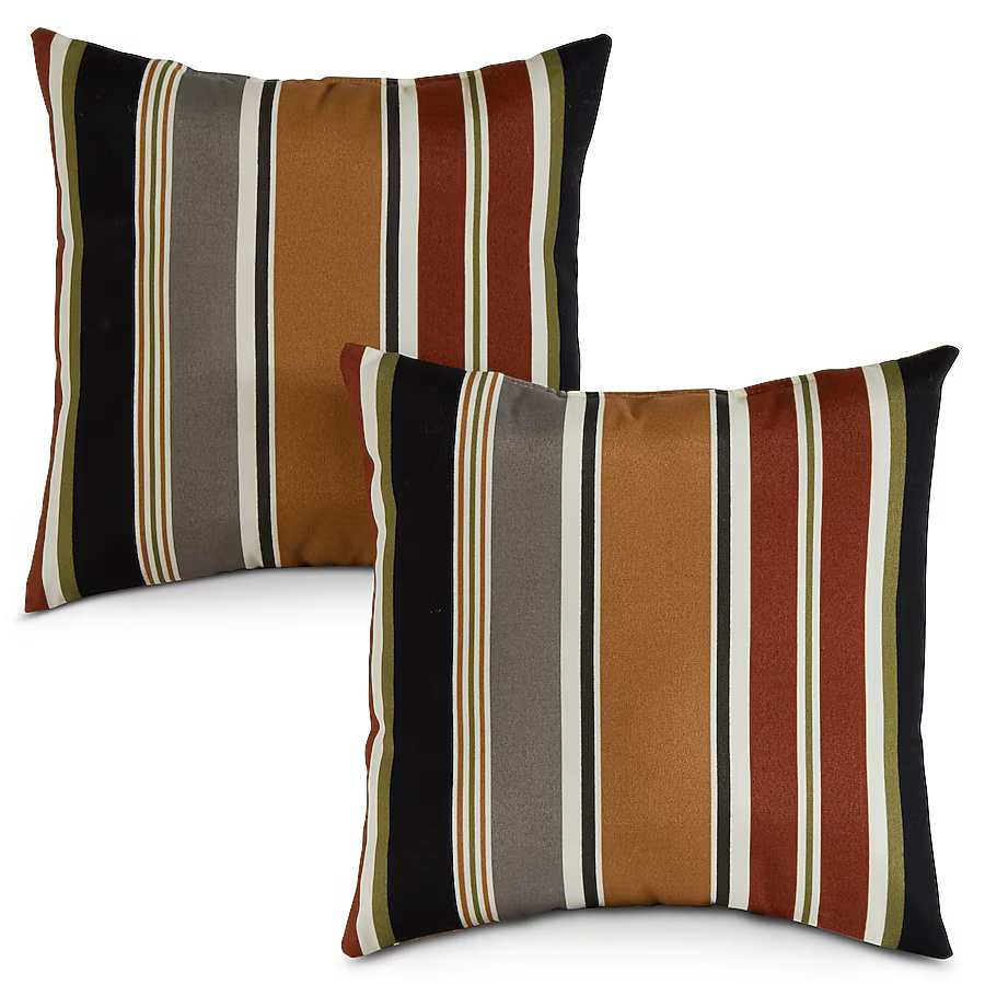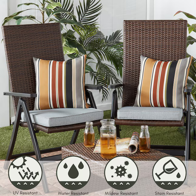 Bring a touch of style and color to your patio setup with this pair of 17-inch square outdoor accent pillows. Every pillow is overstuffed for superior comfort and longevity using an eco-friendly polyester fill derived from 100% recycled plastic bottles. The outer shell is crafted from a rugged outdoor polyester fabric engineered to withstand the elements, offering resistance against water, fading, stains, and mildew.