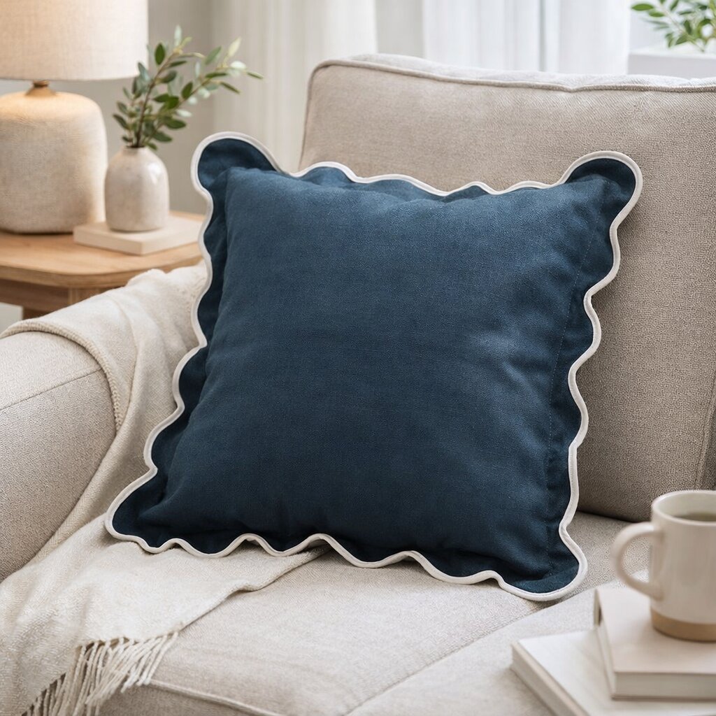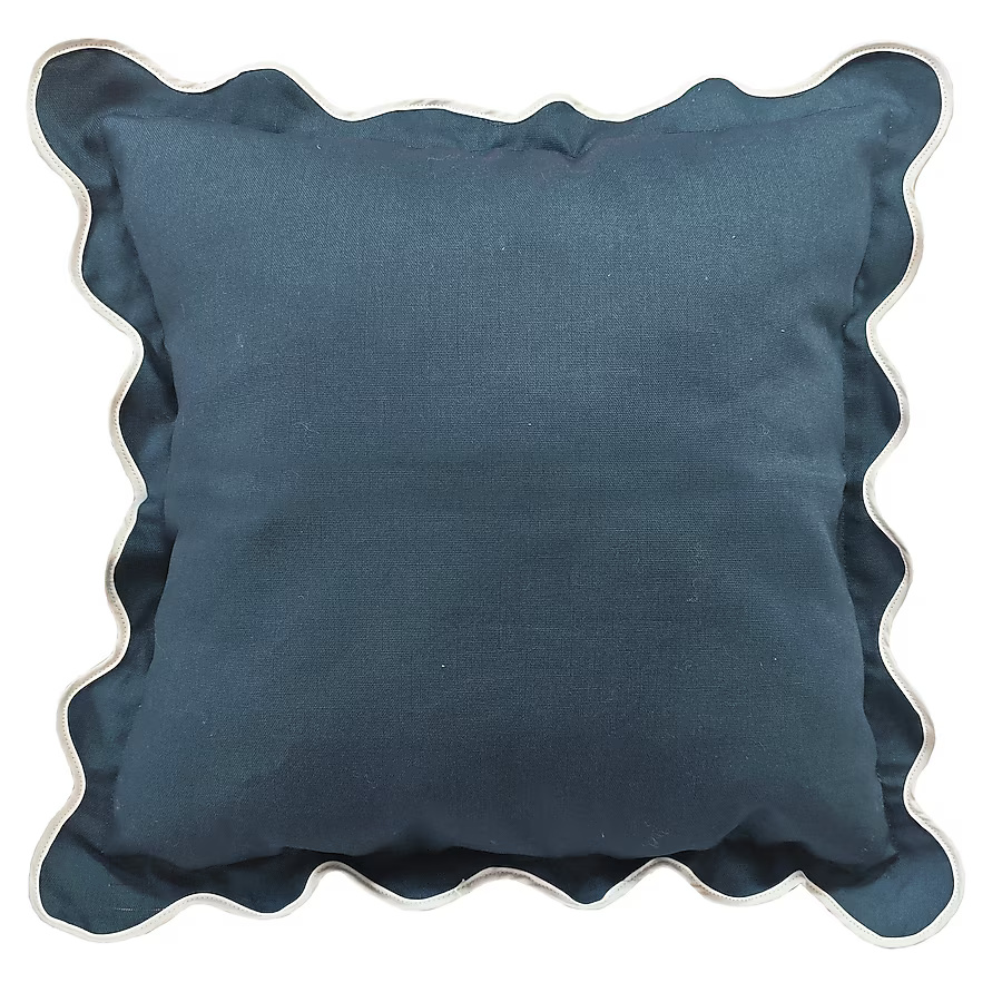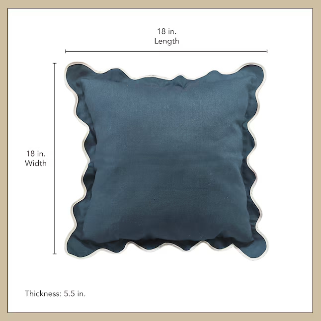 Elevate your outdoor seating with this navy scallop square throw pillow, designed to serve as a striking tropical accent for any patio. Featuring a stylish watercolor-effect animal print, this versatile piece easily coordinates with a wide range of furniture and decor styles. The pillow is crafted from 100% polyester fabric for enhanced UV-resistant durability and includes a one-year limited warranty to ensure long-lasting quality and protection for your purchase.