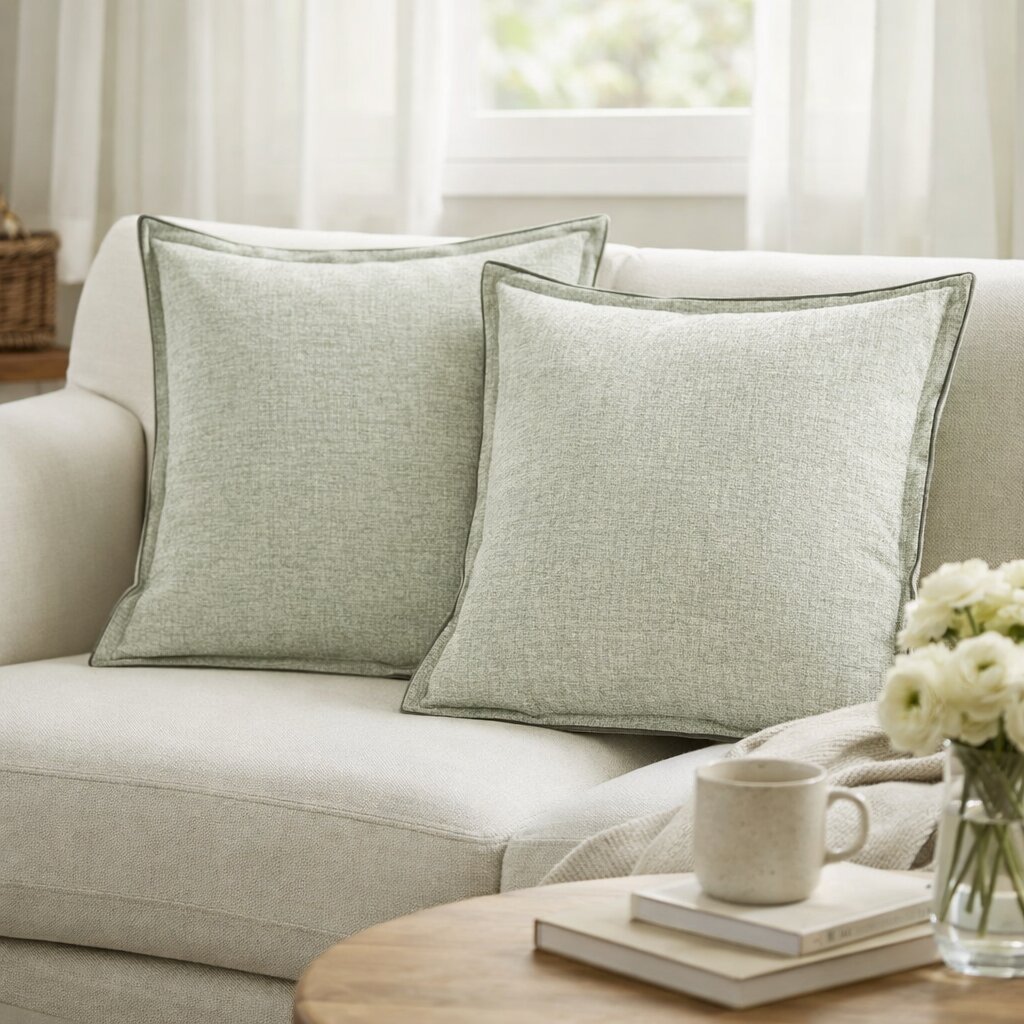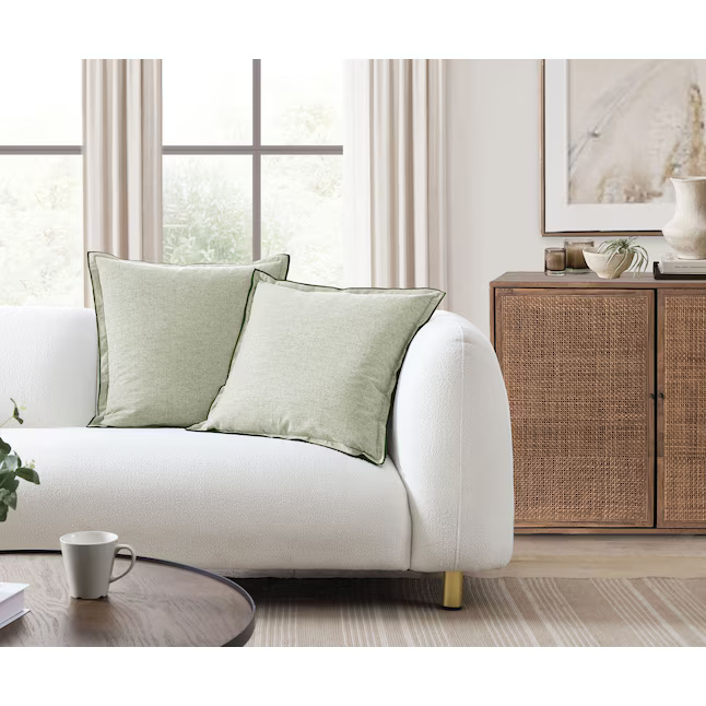 This set of five green accent pillows offers a versatile “everyday neutral” aesthetic that complements any room in your home. Crafted from a high-quality blend of 80% cotton and 20% linen, each $20 \times 23$ inch pillow features a soft, textured finish for a premium feel. The cushions are overstuffed with eco-friendly 100% recycled polyester fill and include a convenient open-zipper design, making the covers easily removable and machine washable for effortless maintenance.