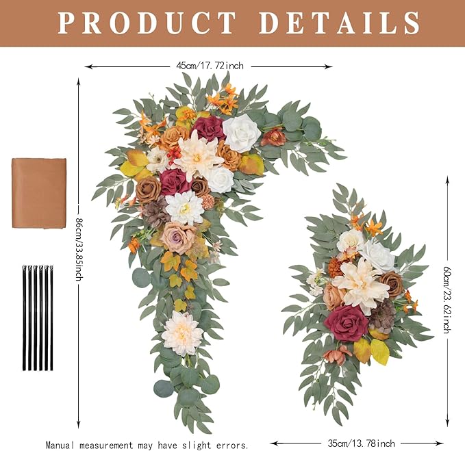 • ❤️Premium Wedding Arch artificial artificial flowers:this “artificial flowers for outdoors set” is designed for a larger wedding arch, altar, arbor, gazebo, etc.